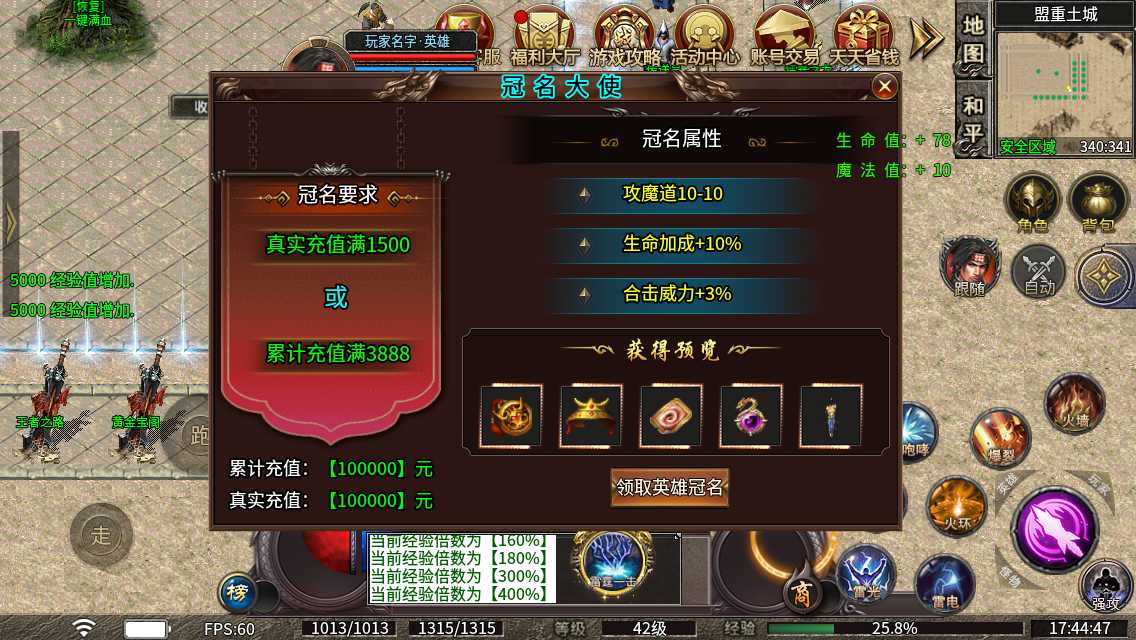 金币充值1:100