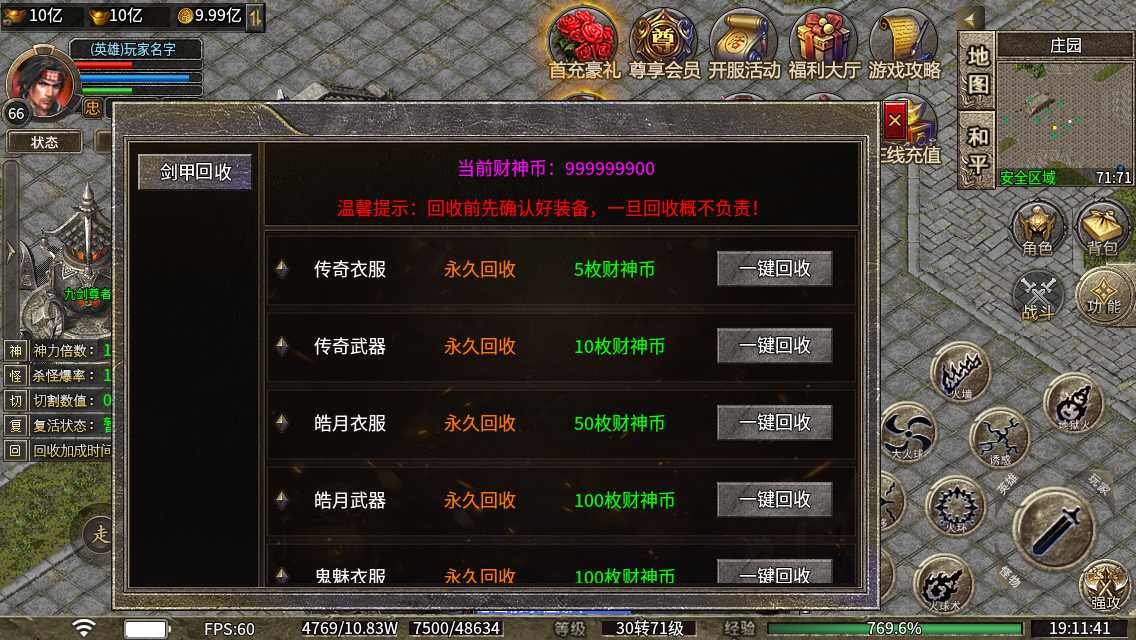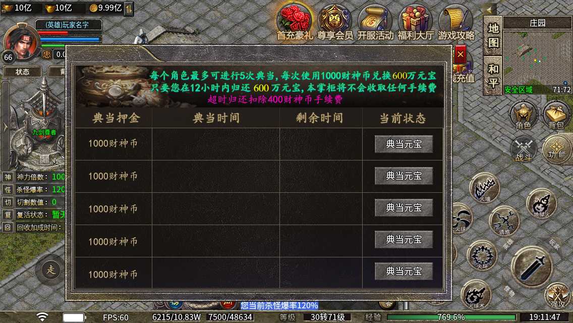 金币充值1:100